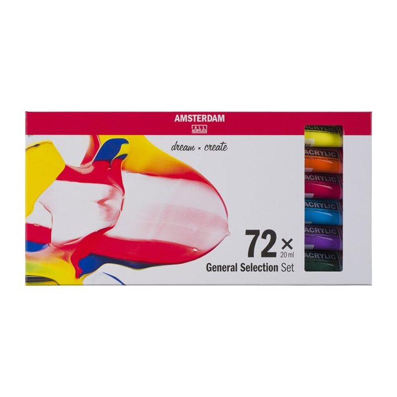 Il set di colori acrilici della serie Standard AMSTERDAM offre una gamma di colori di base più necessaria per la pittura acrilica. I colori possono essere applicate in strati spessi con un pennello o una spatola e una spatola. Grazie alla composizione in resina al 100%, il risultato finale conserva un certo grado di lucentezza, dove è resistente e flessibile. I colori sono caratterizzati da un'elevata resistenza alla luce. L'elevata composizione di pigmenti è adatta principalmente in diluizione con acqua. Il set contiene 72 colori.